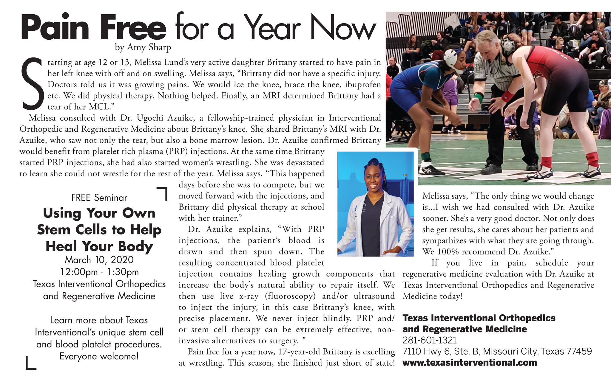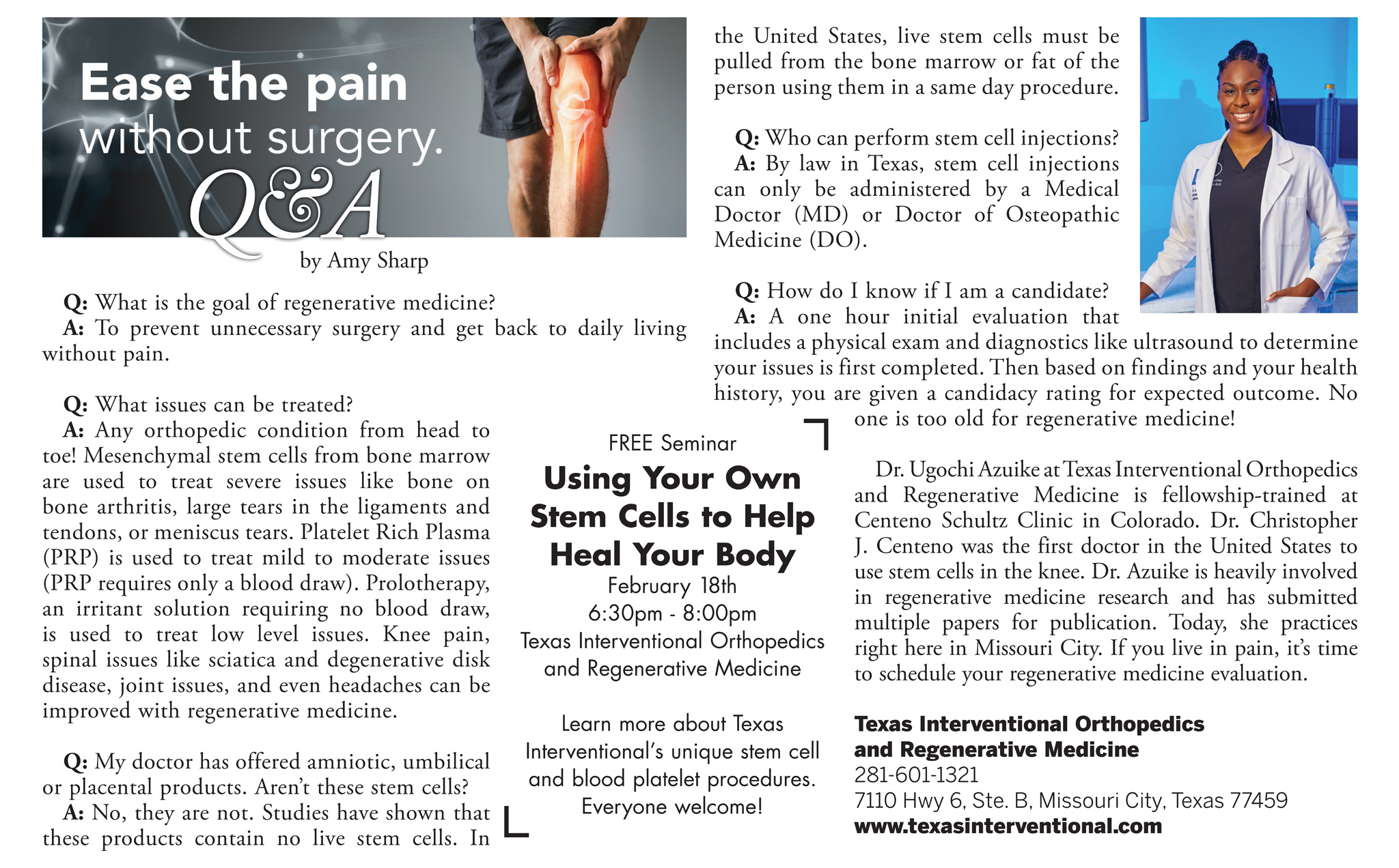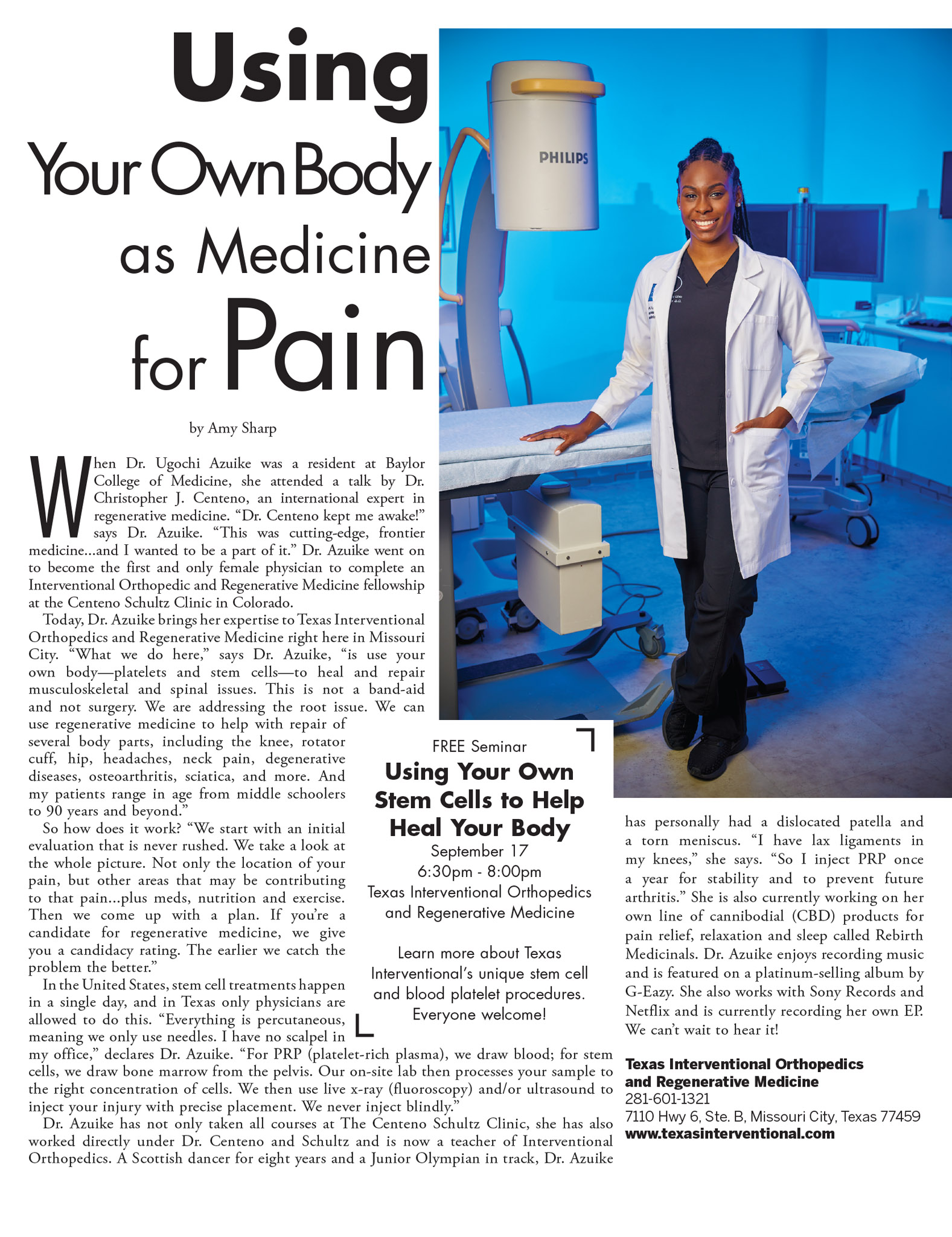 Continued training in newest technology and methods of patient care Having pain and need to meet with Dr. Azuike? Request a consultation
